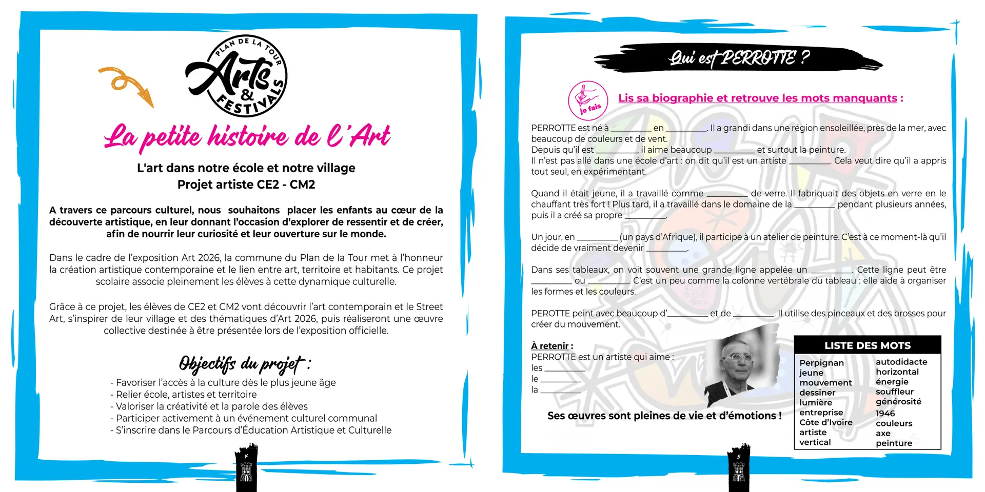 L’acteur principal de cet événement est l’Artiste PERROTTE qui sera présent pour accueillir tous les élèves.